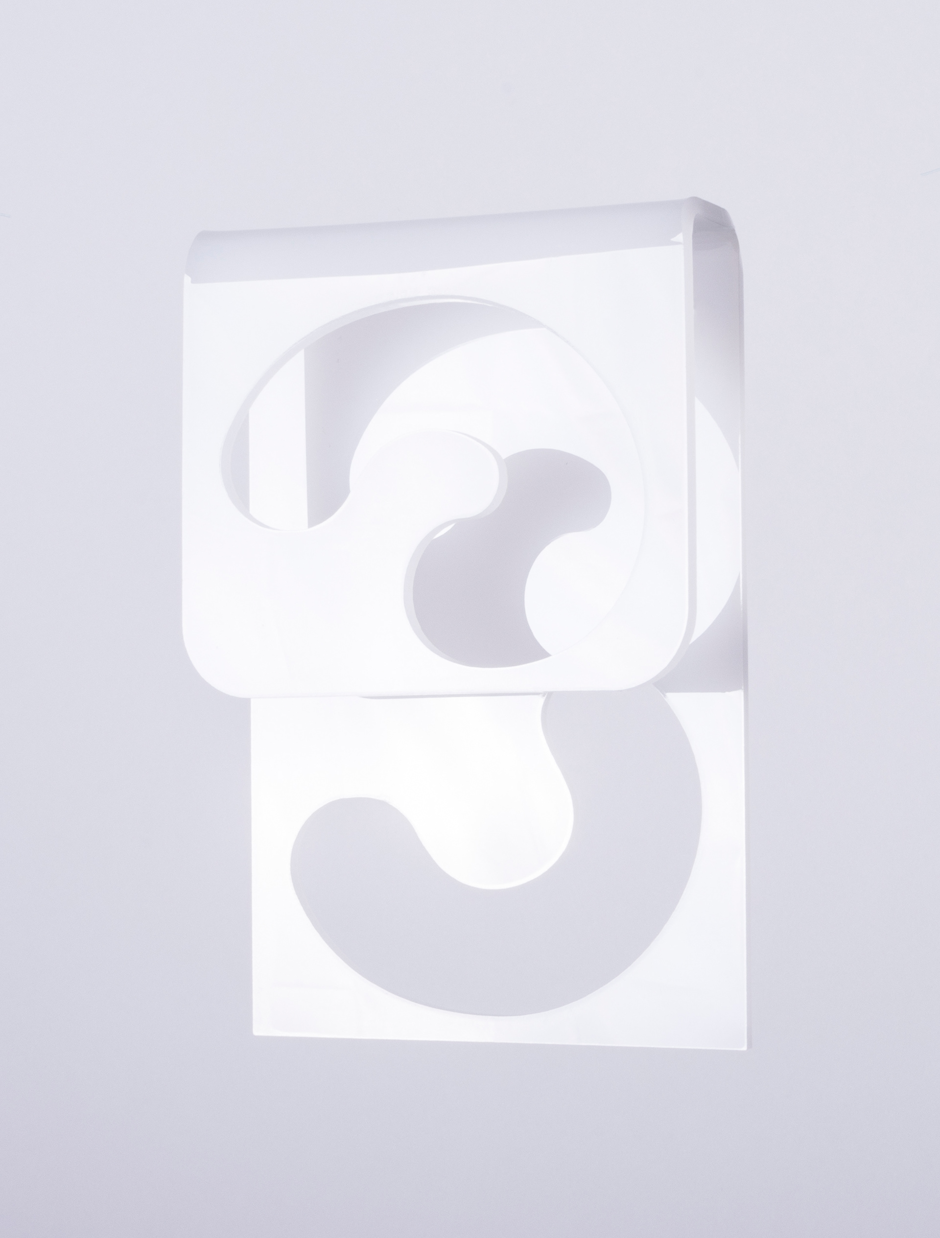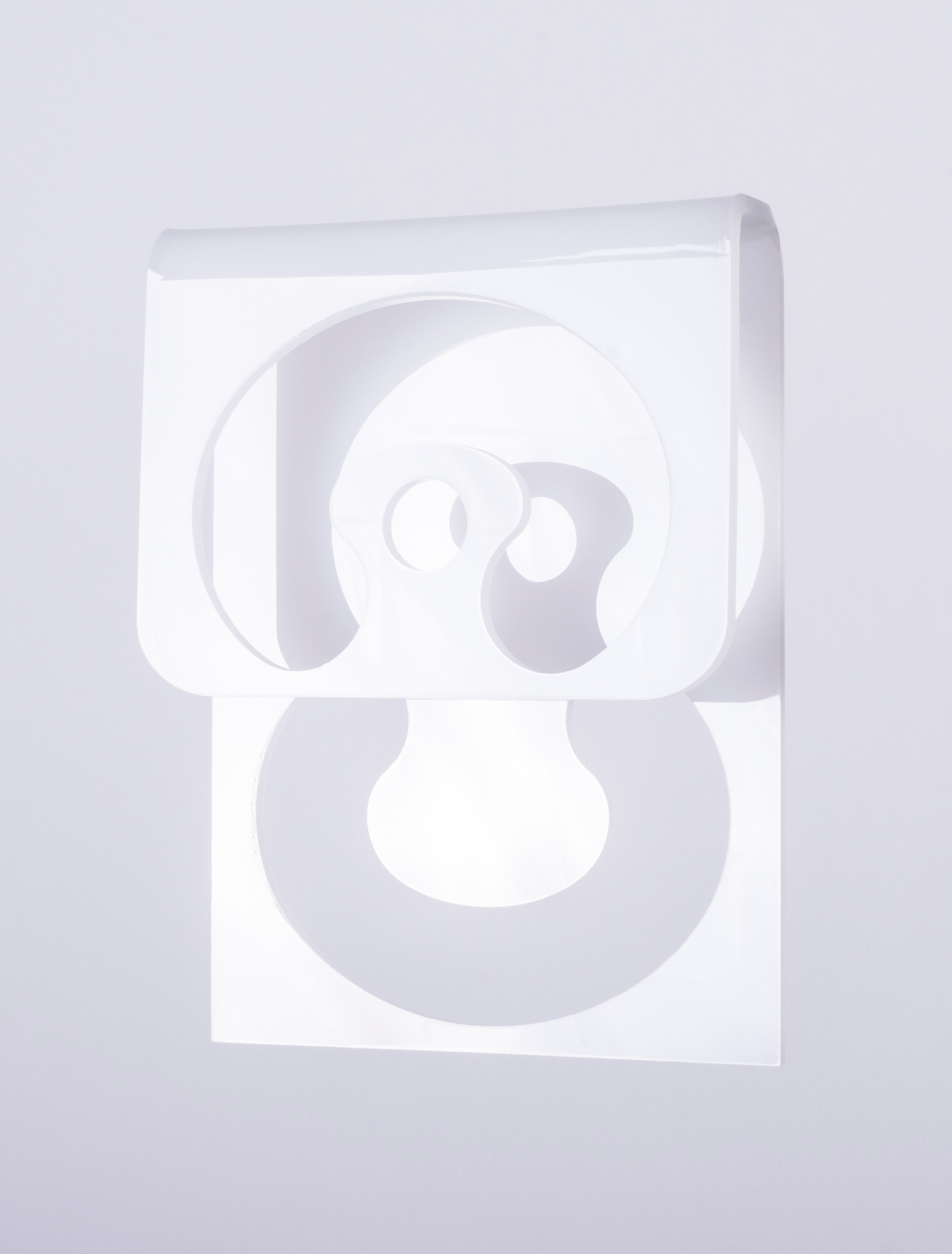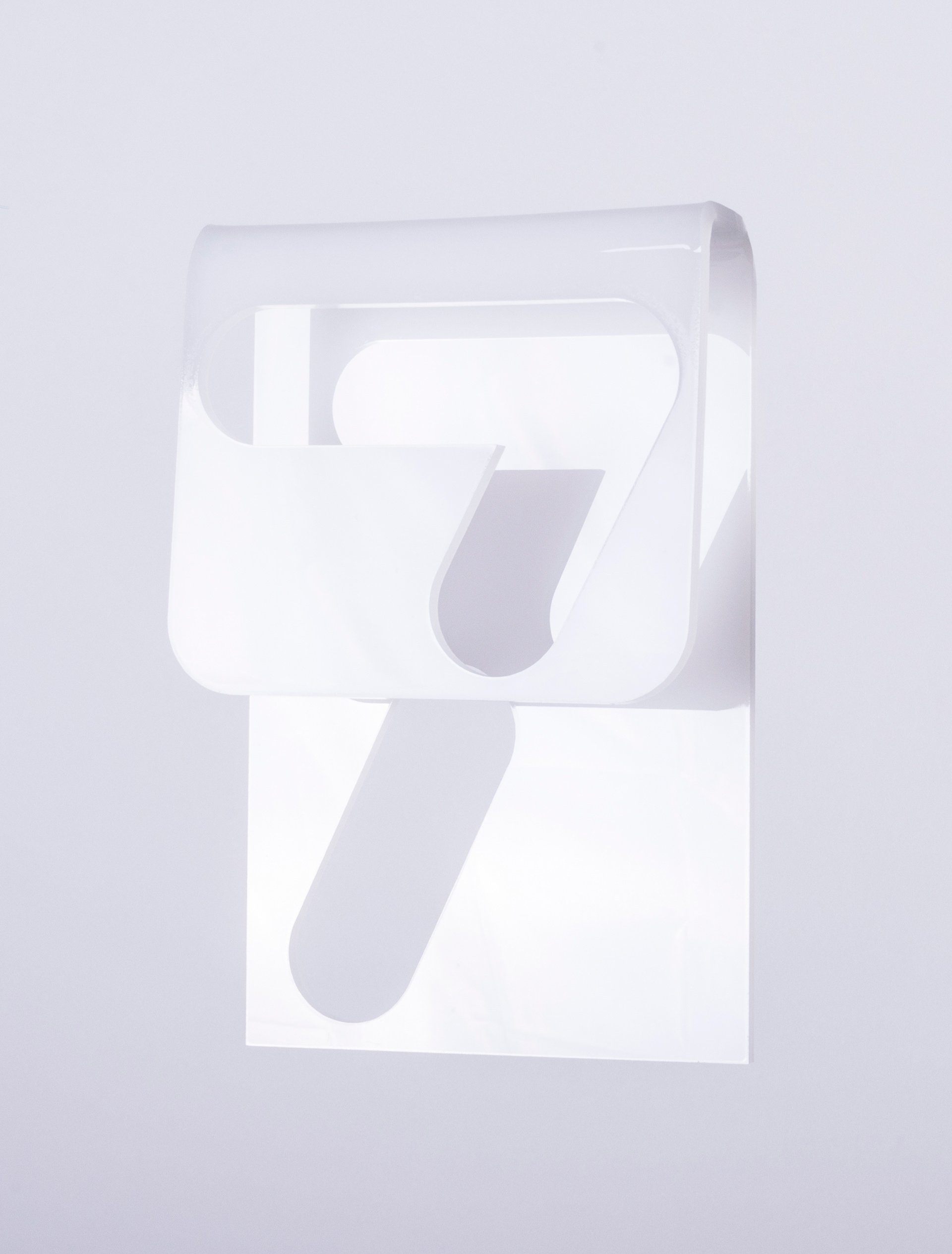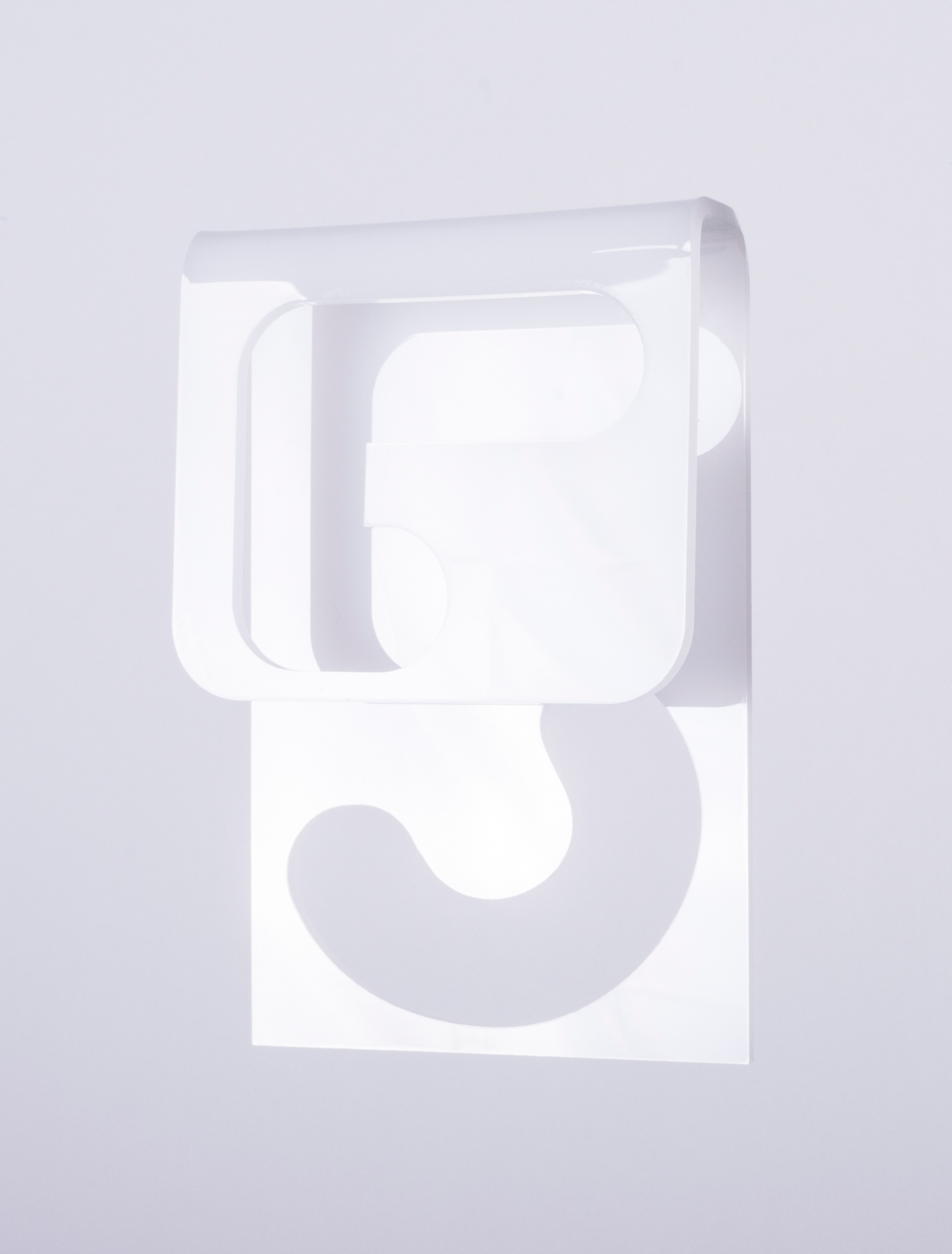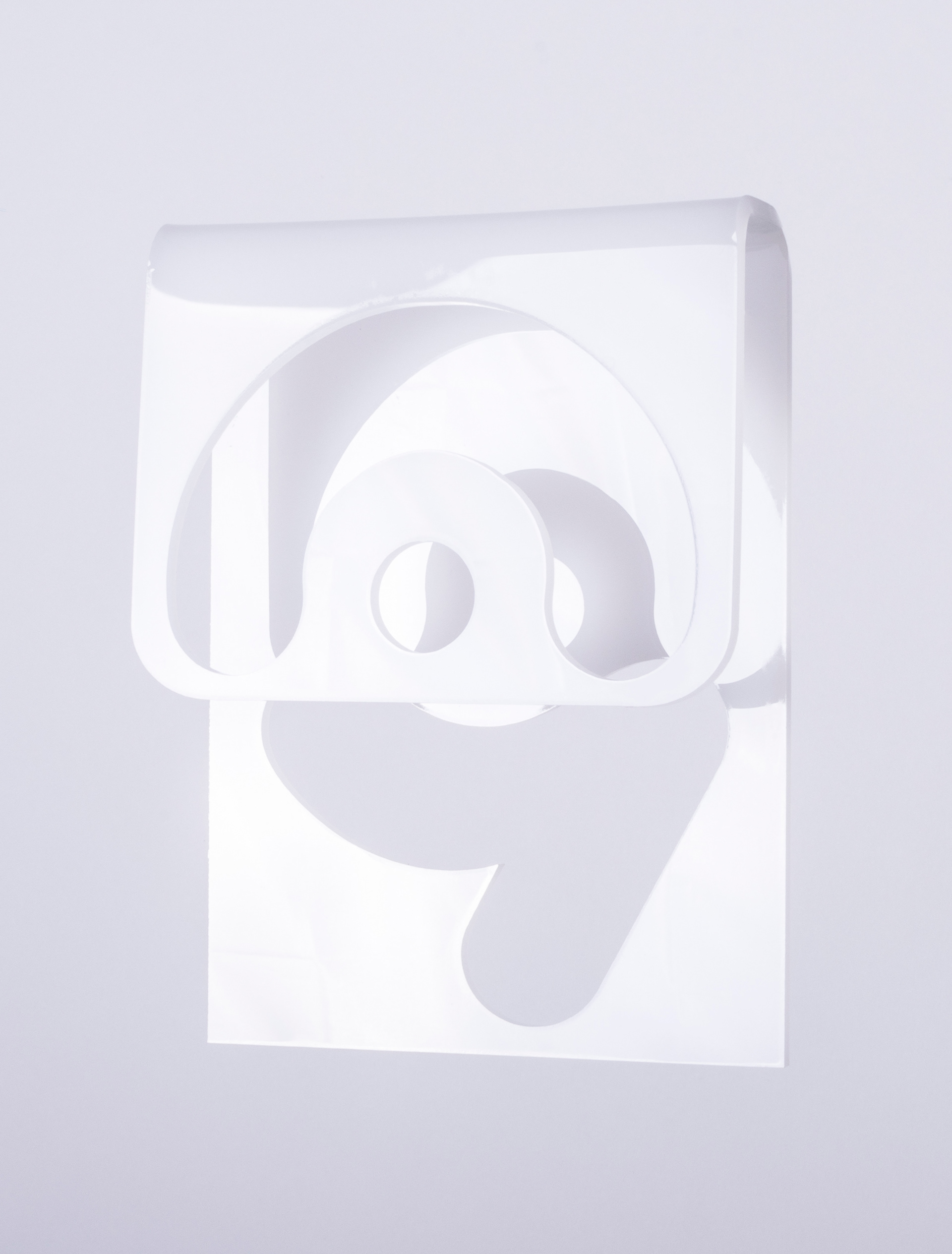 This original design was initially inspired by hinges; the concept evolved, placing the numbers onto two planes of curved acrylic. Typography is custom and was slightly modified from it's original design for the final production.